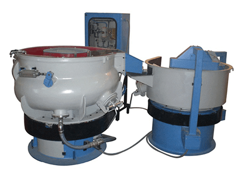 Vibratory finishing machine consists of a bowl lined with polyurethane material which is mounted on springs and uses vibratory motor and unbalanced weights to achieve gyroscopic motion to the workload. Vibratory finishing is used to achieve Deburring, Edge radiusing , Degreasing, Descaling, Polishing, Mirror Finishing and Smoothening of variety of components.